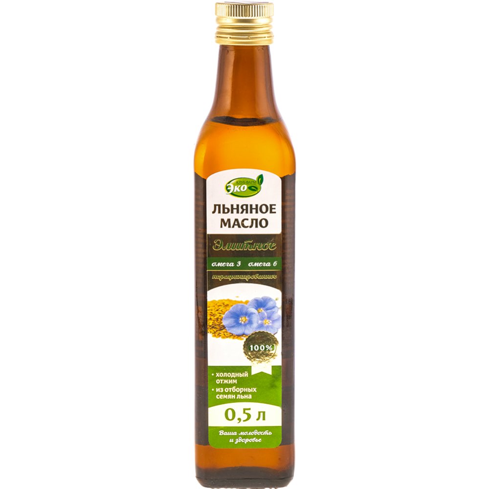 Масло льняное «Клуб Фарм Эко» нерафинированное, 500 мл.