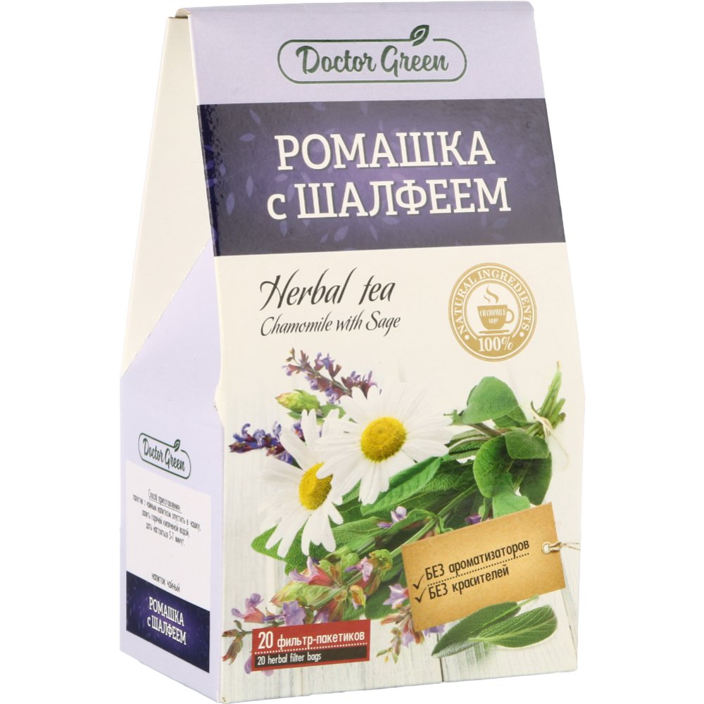 Напиток чайный «Doctor Green» ромашка с шалфеем, 20 г.