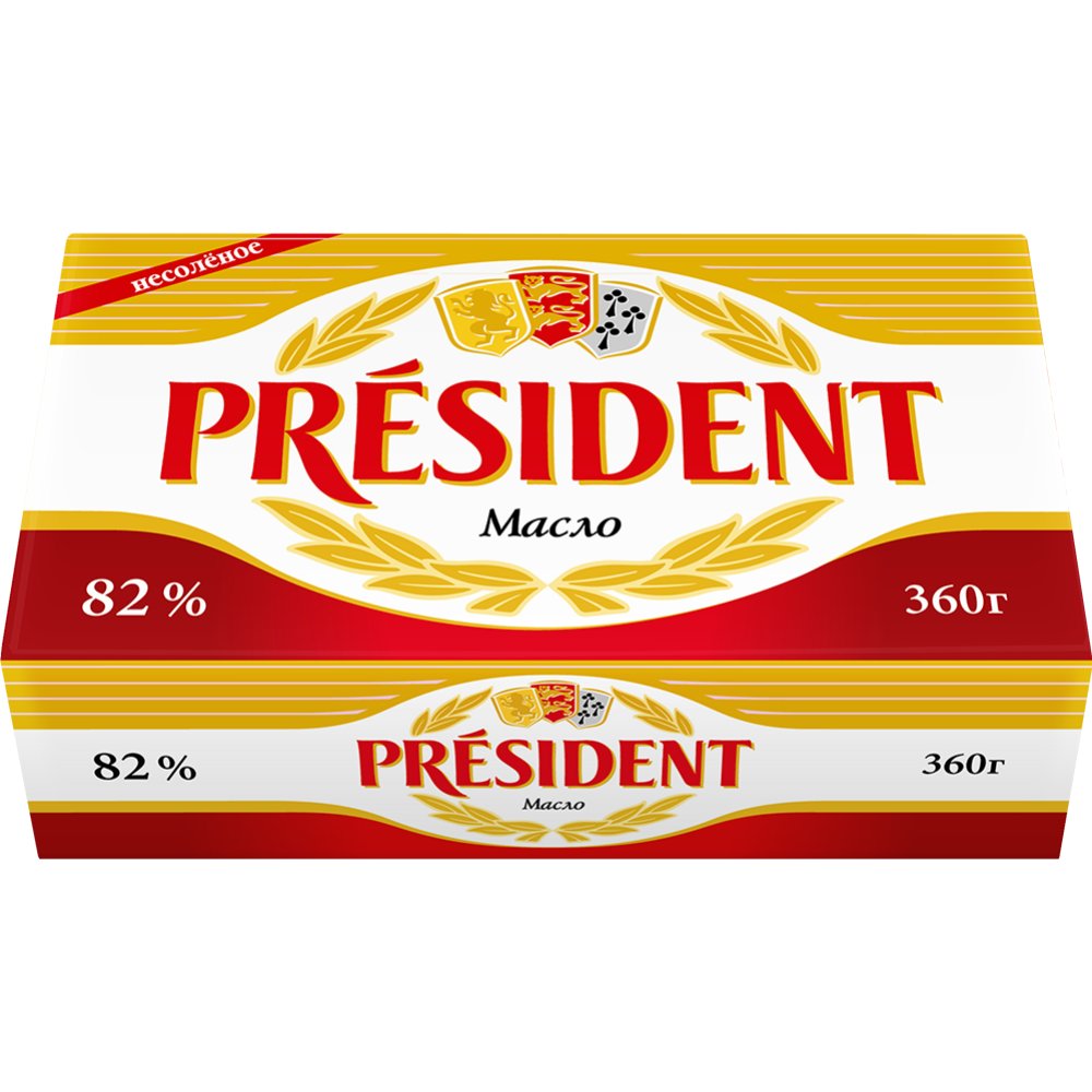 Масло кислосливочное «President» несоленое, 82%, 360 г
