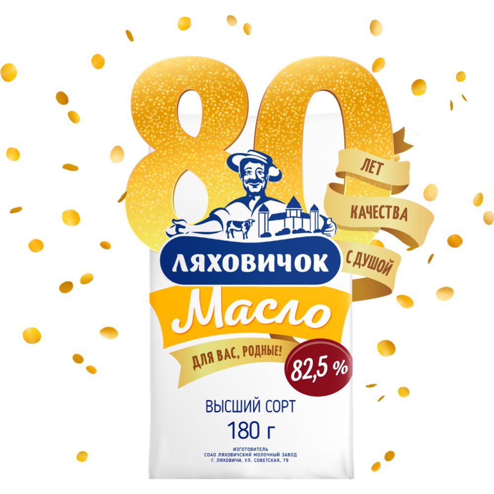 Масло сладкосливочное «Ляховичок» несоленое, 82.5%, 180 г
